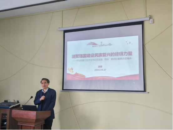 马克思主义学院院长高君教授首先从会议背景、两会亮点和深刻领会习近平总书记重要讲话精神等三个方面进行领学。