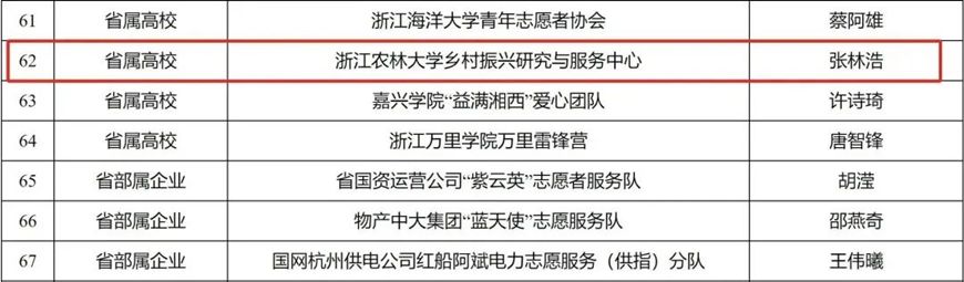 2023年度浙江省志愿服务工作突出贡献集体部分名单(据悉,本次评选通过初评推报、资格审查、材料审核等多个环节,全省通报表扬突出贡献集体10个、突出贡献个人200名。)