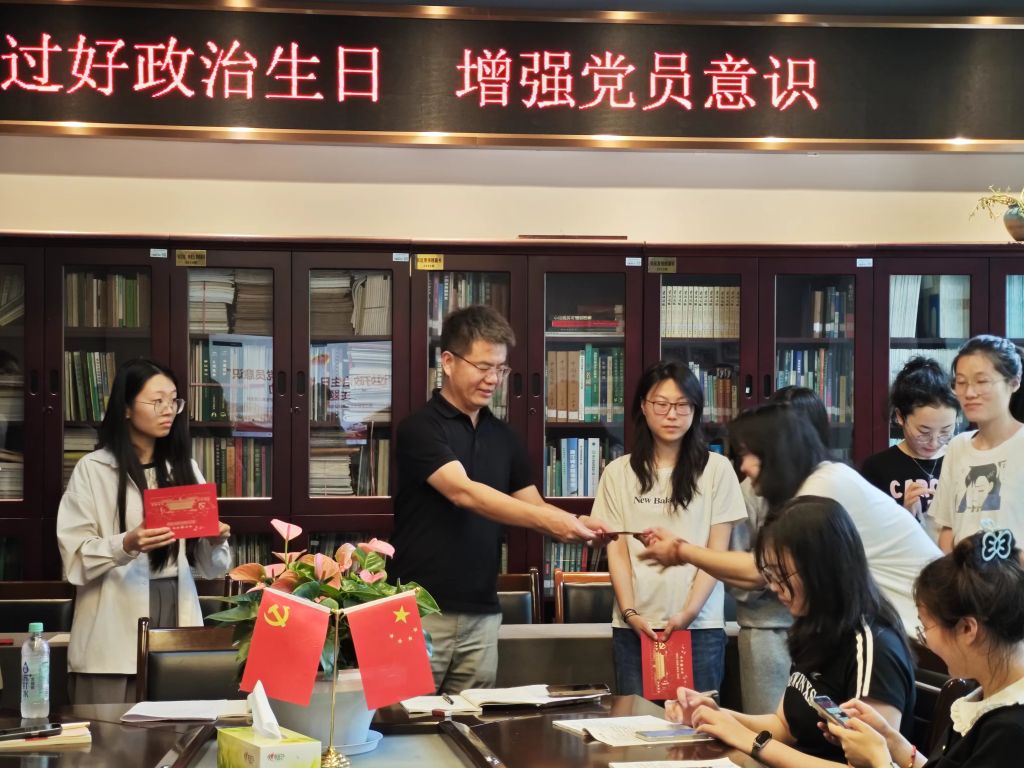 在庄重的仪式中,赵院长为三支部3-6月入党的党员们颁发“政治生日”贺卡、寄语生日祝福。仪式虽简单,但大家切实感受到了党组织的关怀,党员的荣誉感和归属感、责任意识也于温暖的氛围中得以强化。