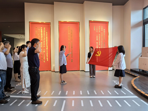 讲解结束后,全体党员面对党旗重温入党誓词。大家肃立庄严,声音洪亮,表达了对党的忠诚和坚定信念。