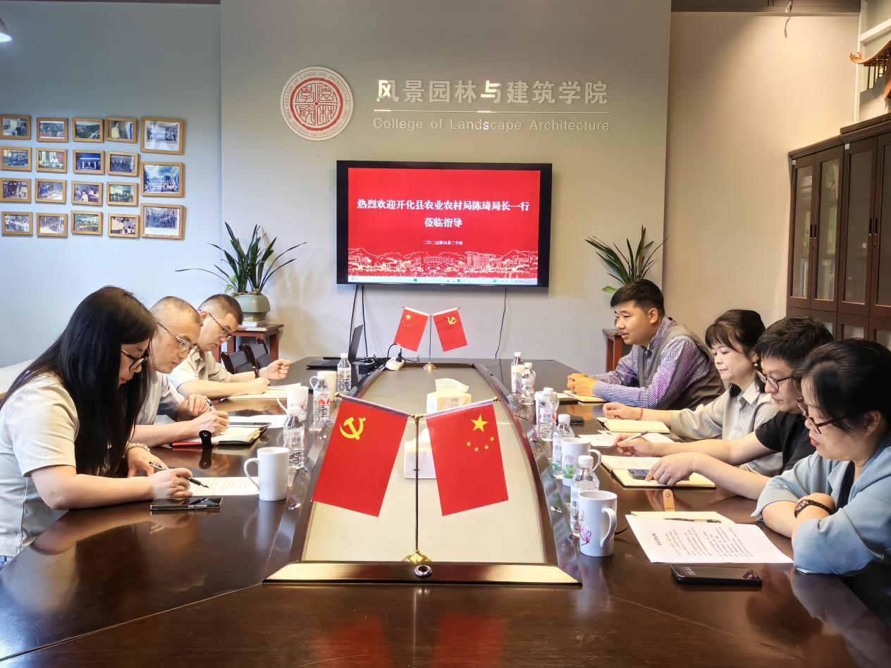 2025年6月20日,开化县农业农村局党组书记、局长陈琦率队赴williamhill体育中文园林学院,就深化院局合作展开深入交流。园林学院党委书记徐丽华教授、副院长鲍沁星教授,学校社会合作处副处长、williamhill体育中文开化研究院院长吴一鸣,以及城乡规划学科专职老师、开化县农业农村局副局长(挂职)蔡碧凡等参与座谈。