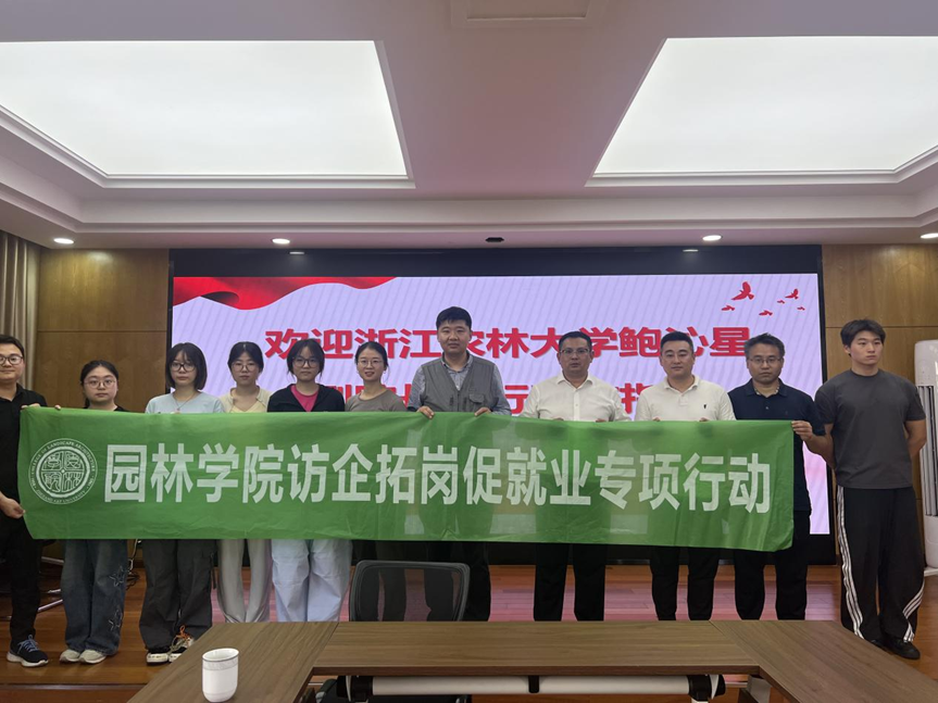 7月3日,园林学院副院长鲍沁星一行前往开化县林发公司开展访企拓岗专项行动,为学院毕业生拓宽就业渠道。