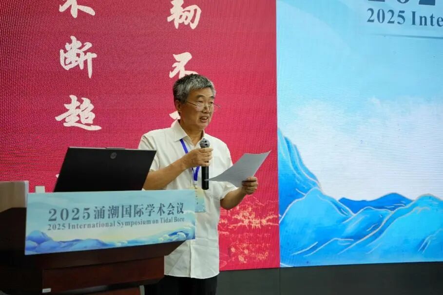 主旨报告由浙江省钱塘江涌潮研究会名誉会长徐有成主持。