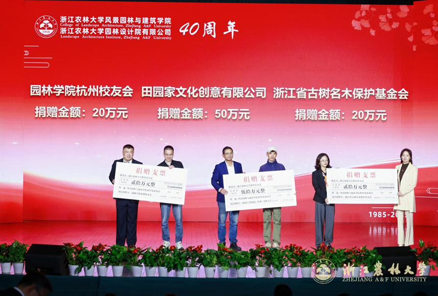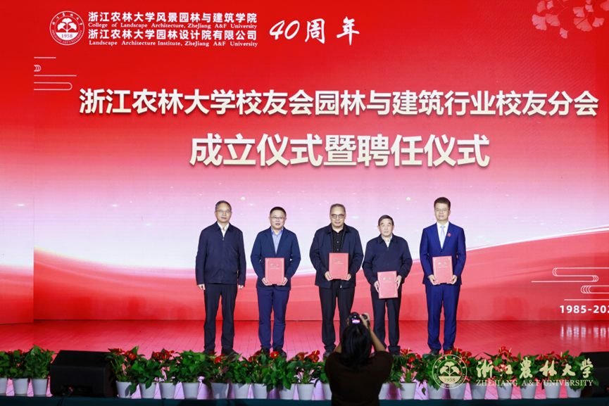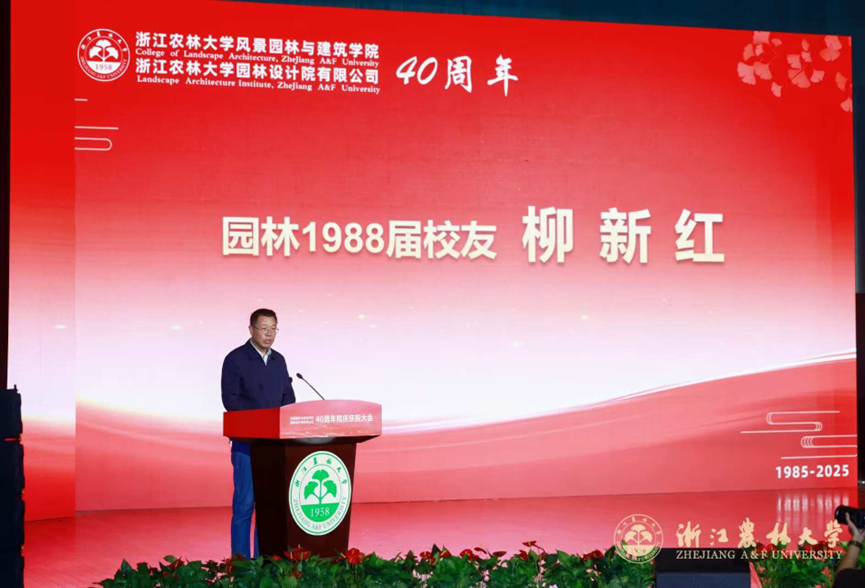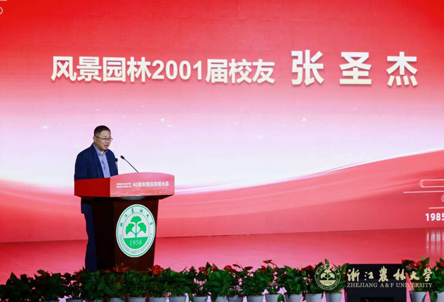 浙江省风景园林学会理事长施德法,北京林业大学园林学院王向荣、同济大学建筑与城市规划学院刘滨谊,1988届园林专业校友柳新红校友、2001届风景园林专业校友张圣杰,教师代表徐斌,学生代表阮桢烨分别发言。