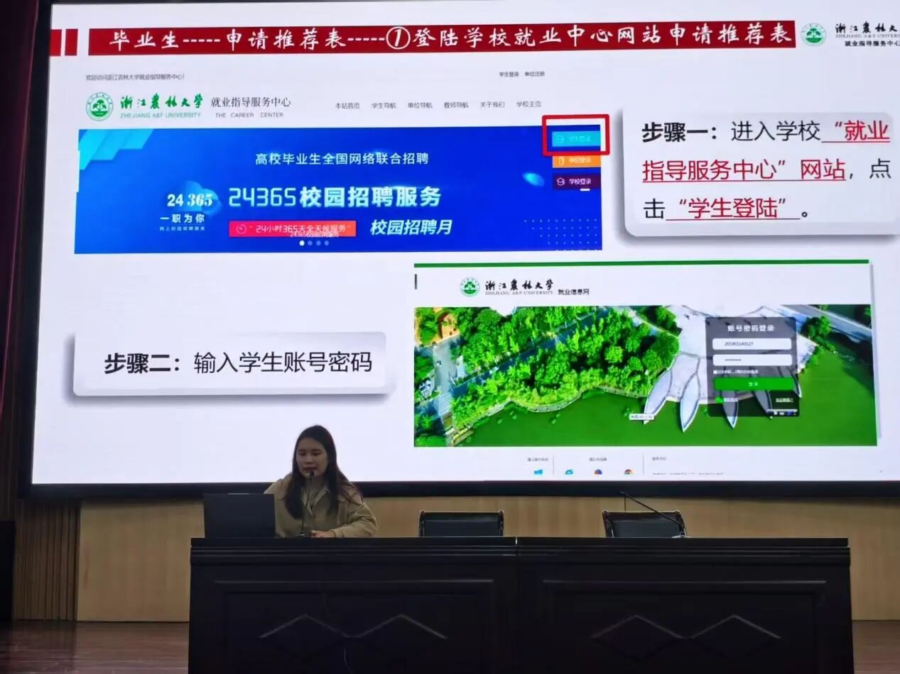 卢奕辰详细讲解了签订就业三方协议的规范流程:从核对用人单位信息是否准确,到填写个人资料、约定报到期限等条款,直至最终盖章生效。她特别提醒,务必审阅违约金、工作地点及岗位等关键细节,确保协议内容真实有效,以保障权益并顺利衔接毕业手续。