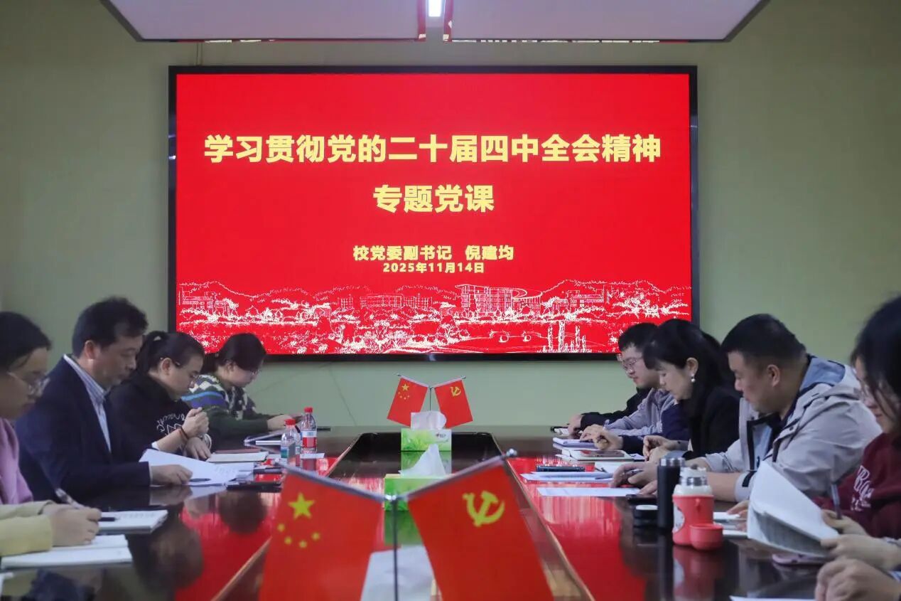 11月14日下午,校党委副书记倪建均为城乡规划学研究生党支部讲授学习贯彻党的二十届四中全会精神专题党课,党办相关人员陪同;学院党委书记徐丽华、学院党委副书记张孟镇、党支部书记蔡梦莎及支部全体党员同志参加学习。