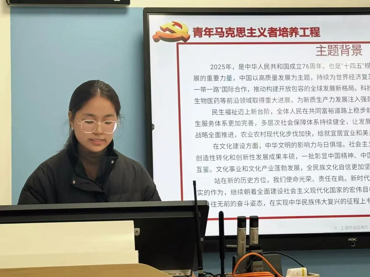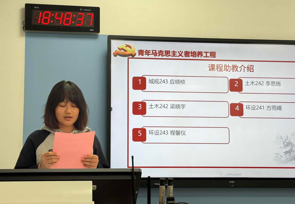 11月20日晚,园林学院第十届青年马克思主义者培养工程开班仪式于教一503教室顺利举行。园林学院团委书记赵鑫磊,学生会秘书长董雨鑫,辅导员卢奕辰、吴昊晟、王淏出席本次活动。第十届青马工程全体学员、助教参与此次开班仪式。
