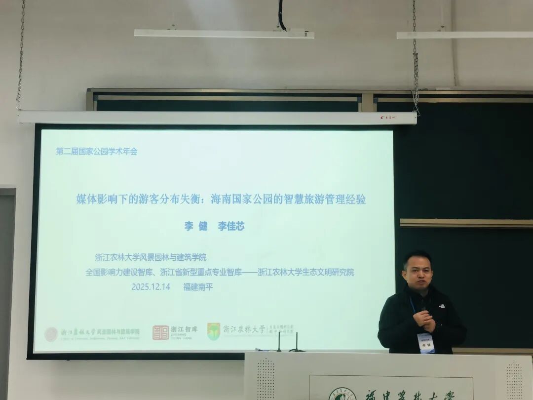 我院李健教授在 “国家公园共建共治共享”分论坛作了《社交媒体影响下的游客分布失衡:海南国家公园的智慧旅游管理经验》专题报告。同时兼任“国家公园共建共治共享”分论坛的召集人和主持人,推动分论坛聚焦《国家公园法》颁布后的法治治理体系建设,深入探讨国家公园为主体的保护地体系生态保护补偿逻辑、空间正义、经营性服务、多元主体协同治理的路径方法,为完善国家公园治理机制提供学术参考。陶一舟副教授应邀参加“国家公园学科发展与人才培养”分论坛,并在该分论坛“国家公园专业人才培养的关键问题”圆桌会议环节进行与国内同行进行圆桌讨论。