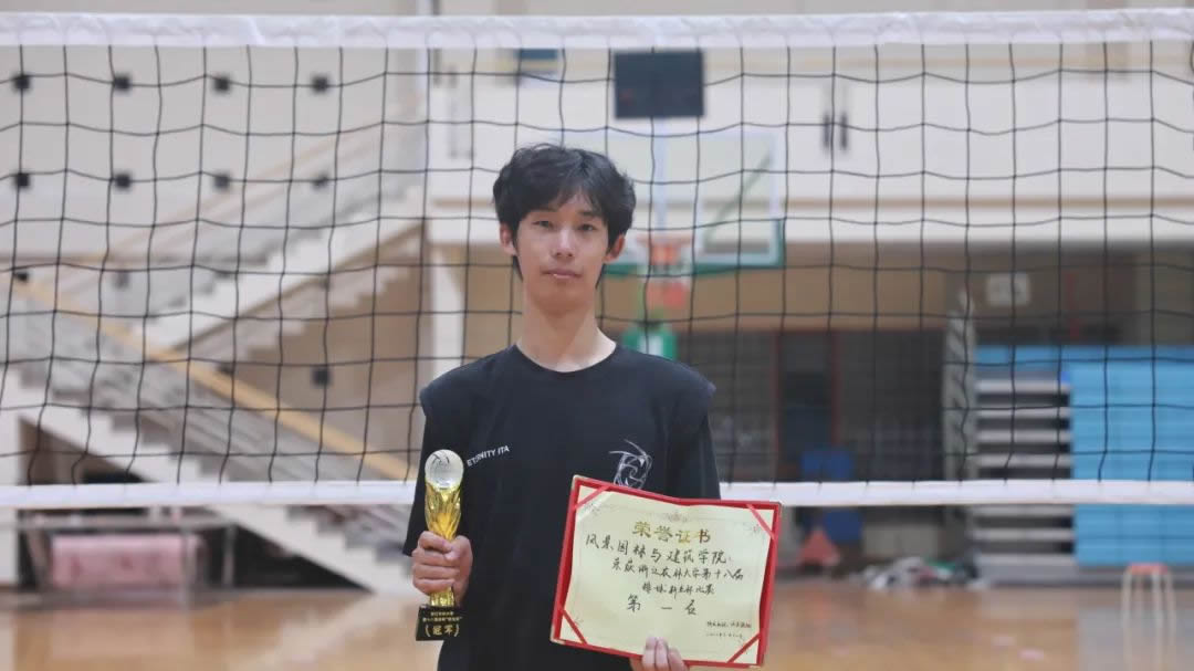 在赛场之外,他热衷于参与学院各类文艺活动,积极投身于各项学生事务。连续在2018-2019年度的新生才艺秀及毕业生晚会上登台表演,并以艺术团副团长的身份策划并参与了2020年的新生才艺秀。同时,他积极投身各类竞赛,屡次在省挑战杯及“互联网+”创新创业大赛中斩获殊荣。在考取我校城乡规划学研究生后,依然保持对学生工作的热情,报名并被聘任为园林学院的兼职辅导员并担任研究生会干部。尽管课业与工作繁忙,但他始终不畏艰辛,始终以乐观积极态度去面对各种挑战。这一切的背后,离不开他在体育馆无数次拼搏的经历的支持。回顾在浙农林男排的六年时光,他表示:“排球给我的,远不止几张奖状,更有那群共度艰难的兄弟,以及永不言败、始终保持向上的意志,让我在人生道路上砥砺前行。”