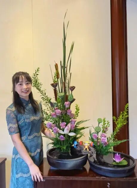 同时,我成为杭州市风景园林学会插花艺术分会秘书处成员,师从插花大师范建文。我每年组织并参与全省、全市插花比赛,斩获多项奖项,考取高级花艺师资格。借助省、市风景园林学会的平台,我获得更多与行业资深专家交流学习的机会,在跨界中不断突破成长。