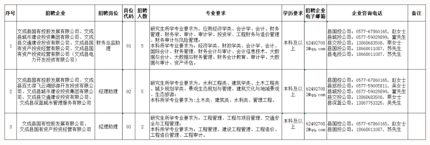 浙江省文成县国有企业面向高校毕业生公开招聘管理人员公告