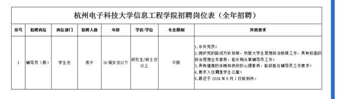 本次招聘人员办公地点在杭州电子科技大学信息工程学院青山湖校区(杭州市临安区青山湖街道杭电路1号)。