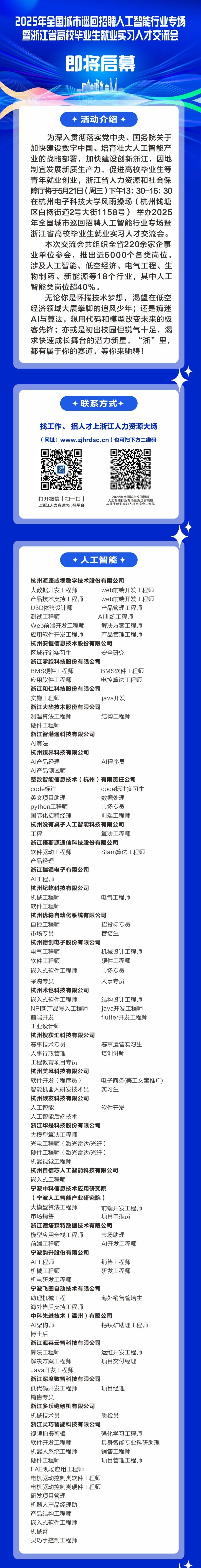 2025年全国城市巡回招聘人工智能行业专场暨浙江省高校毕业生就业实习人才交流会 即将启幕