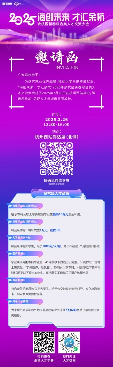 “海创未来 才汇余杭”2025年余杭区新春综合类人才交流大会